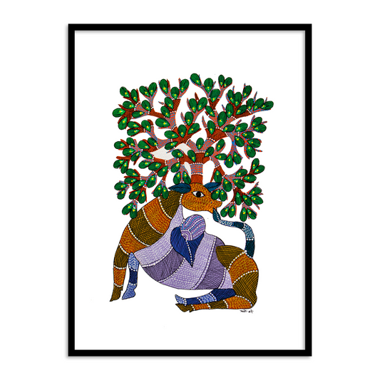 Deer Gond Art Painting | Tribal Folk Framed Wall Art