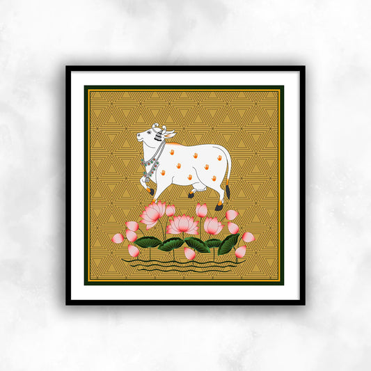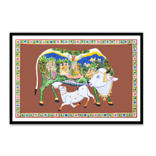Kamdhenu Cow Sacred Pichwai Art for Prosperity & Divinity