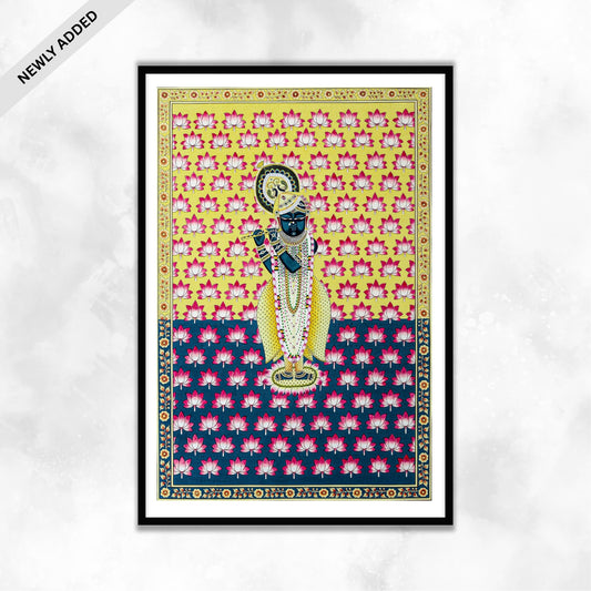 Shrinathji Pichwai Painting | Lotus Background - Living room Decor