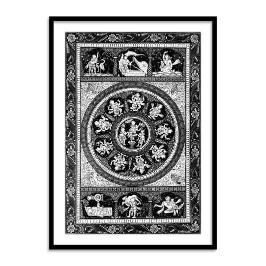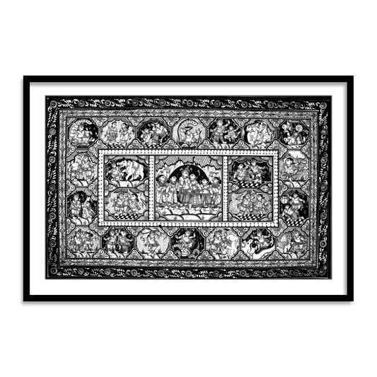 Shri Krishna Ras Leela Pattachittra Art Black and White Framed Wall Art