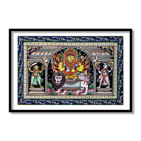 Goddess Durga Pattachitra Art Painting | Framed Wall Art Decor