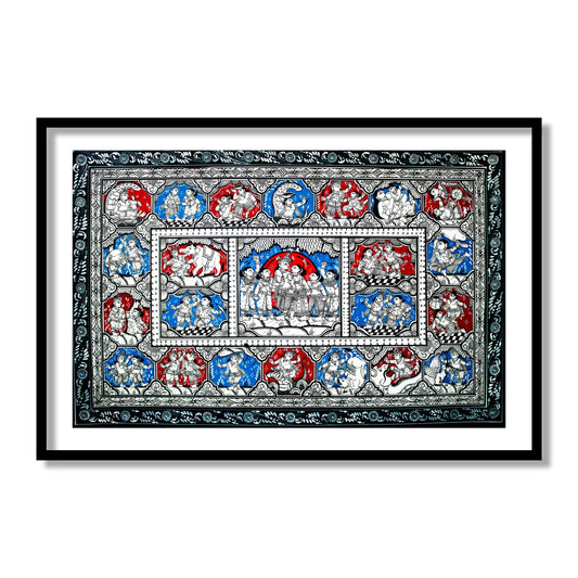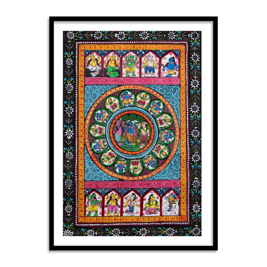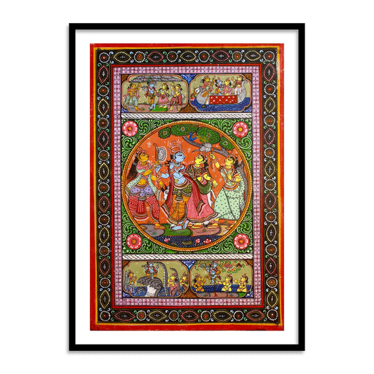 Radha Krishna RaasLeela Pattachitra Art | Buy Krishna Raasleela Patta Painting Framed Wall Art | Canvas Paintings