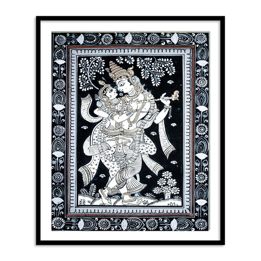 Radha Krishna Black & White Patachitra Painting | Beautiful Patachitra Framed Wall Art