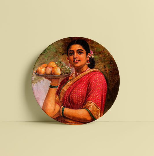 Madri or the Maharashtrian Lady with Fruit by Ravi Varma Ceramic Plate for Home Decor