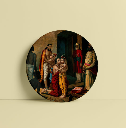 Krishna freeing his parents (Vasudeo and Devki) from prison by Ravi Varma Ceramic Plate for Home Decor