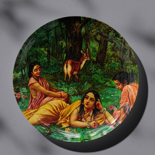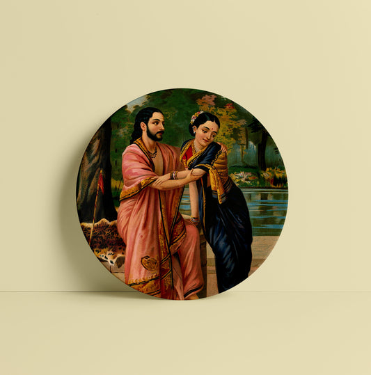 Shakuntala Patra-lekhan by Ravi Varma Ceramic Plate for Home Decor