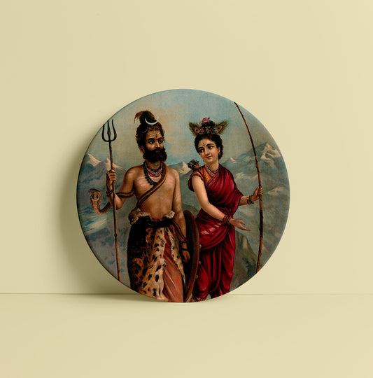Shiva as a Kirat by Ravi Varma Ceramic Plate for Home Decor