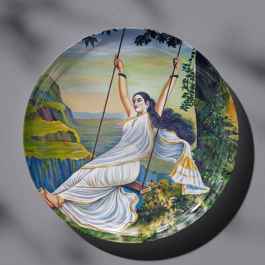 Mohini on the Swing by Ravi Varma Ceramic Plate for Home Decor