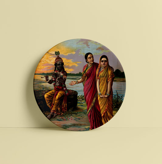 Krishna declaring his love for Radha via a confidante by Ravi Varma Ceramic Plate for Home Decor