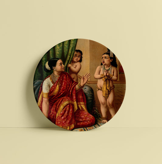 Yasoda glimpses the whole universe inside Krishna's mouth by Ravi Varma Ceramic Plate for Home Decor