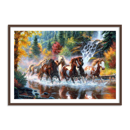 7 Horses in a forest Vastu Painting for Home Wall Decor