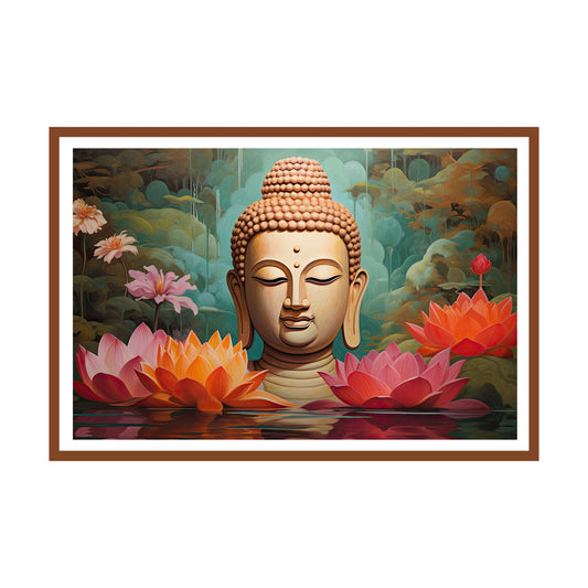 Sacred Buddha with Lotus Flowers for Living Room Decor