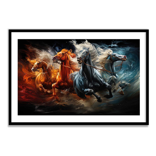 4 Powerful Horses Vastu Painting for Home Wall Decor