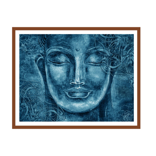 Blue Buddha Face Modern Spiritual Wall Art for Home Decor