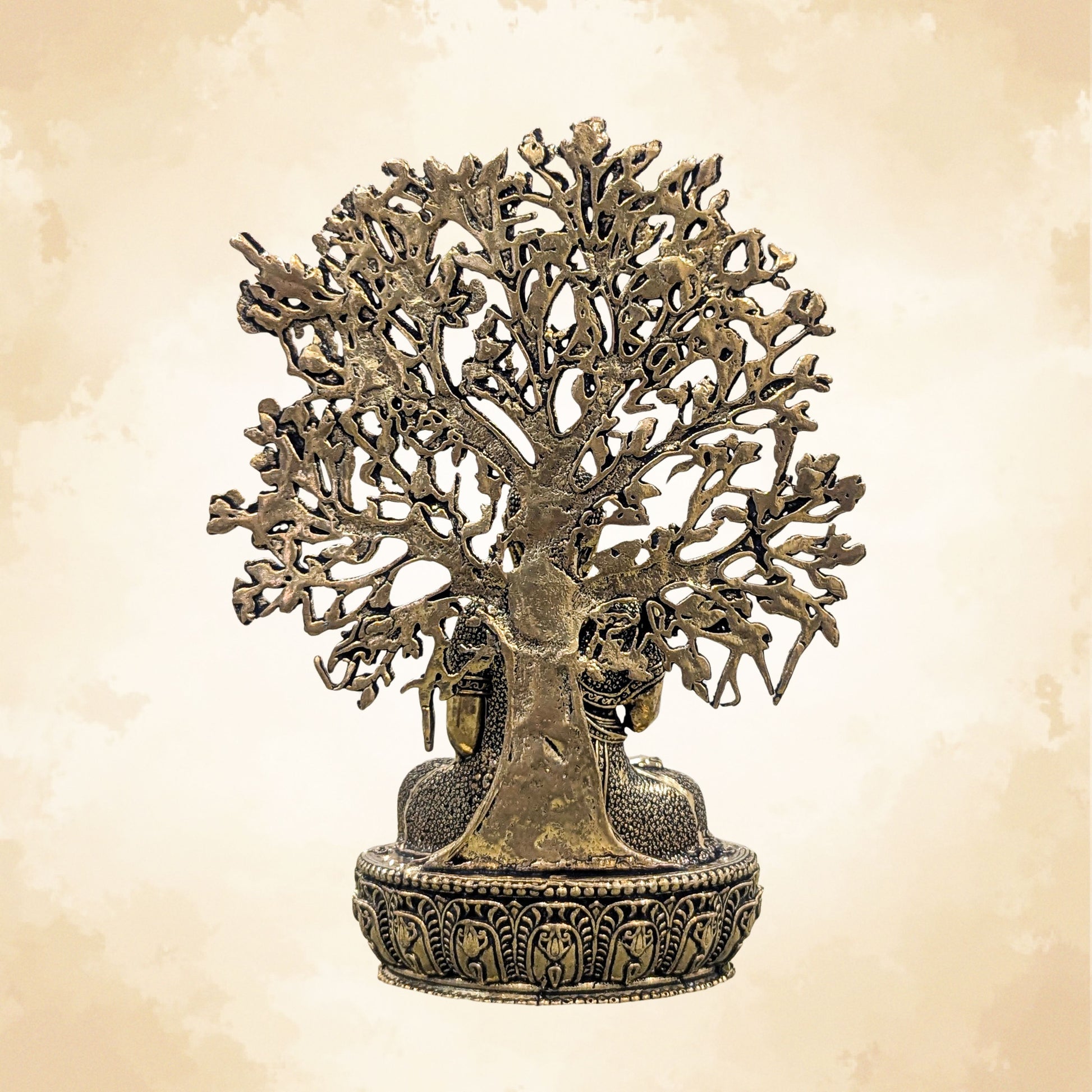 Brass Buddha with Bodhi Tree Idol Handcrafted Vastu Spiritual Home Decor