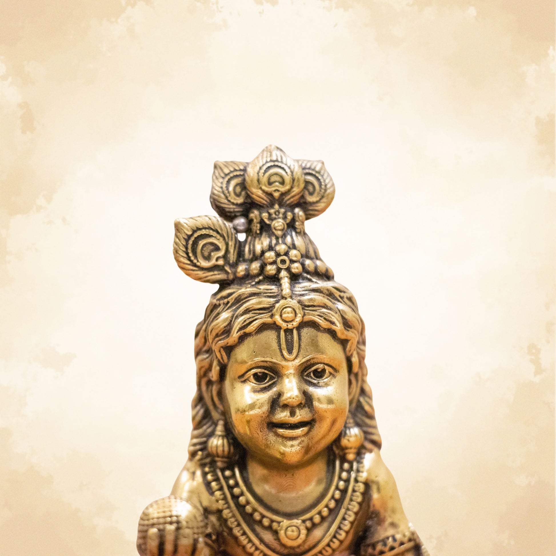 Handcrafted Brass Bal Gopal Idol | Lord Krishna Statue for Prosperity & Positivity -5 inch