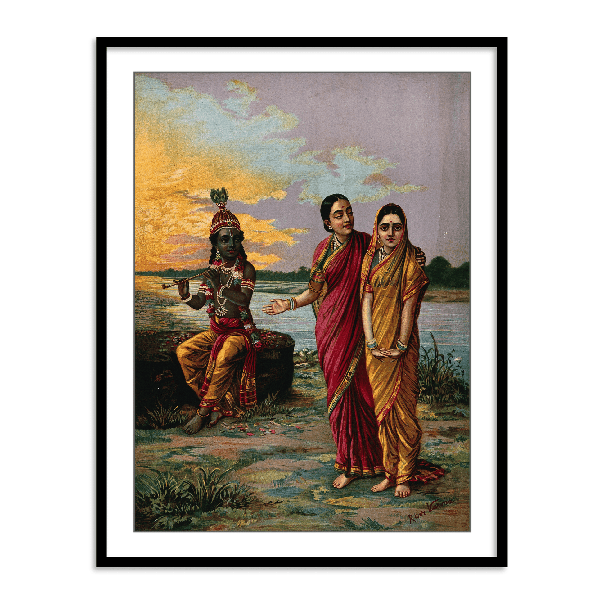Krishna as an infant sitting on Yashoda's lap by Raja Ravi Varma Wall Art for Home Decor