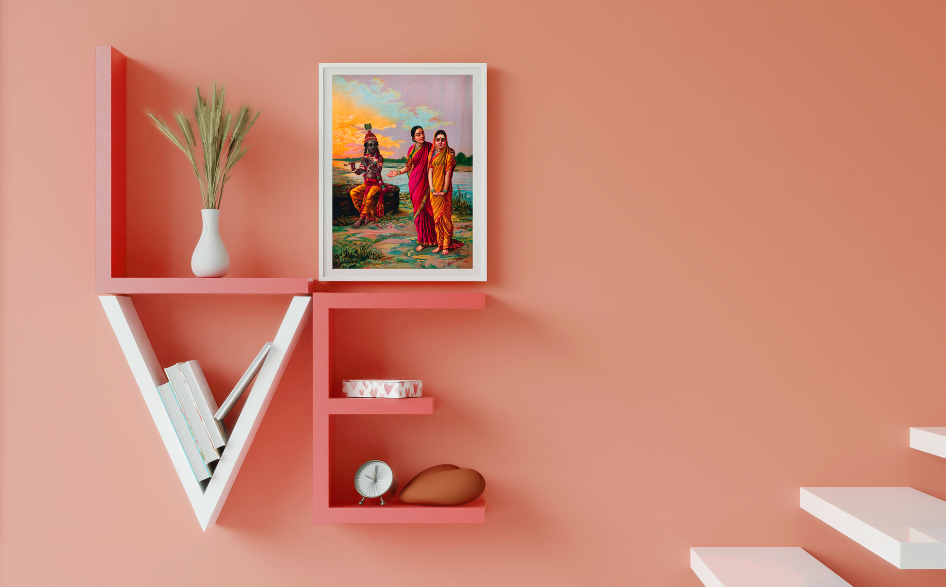 Krishna declaring his love for Radha via a confidante by Raja Ravi Varma Wall Painting for Decor