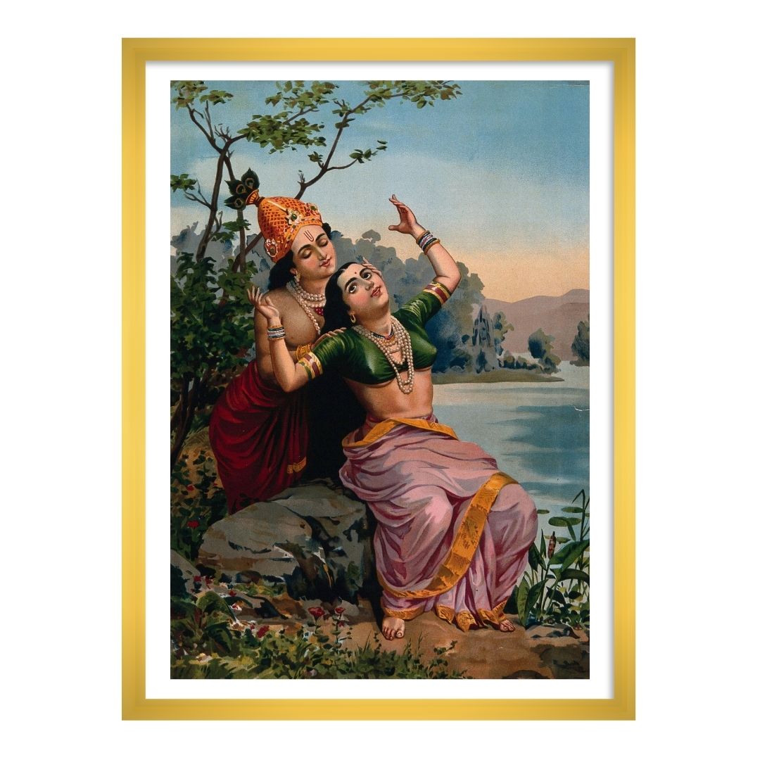 Krishna embracing Radha by Raja Ravi Varma Wall Art Print for Home Decor