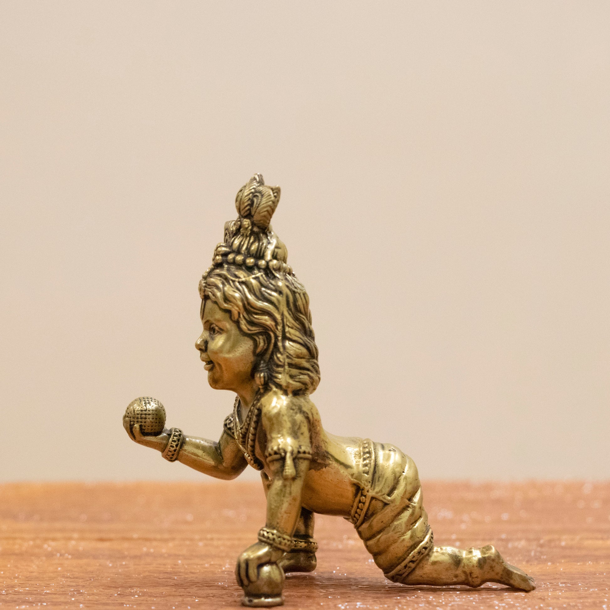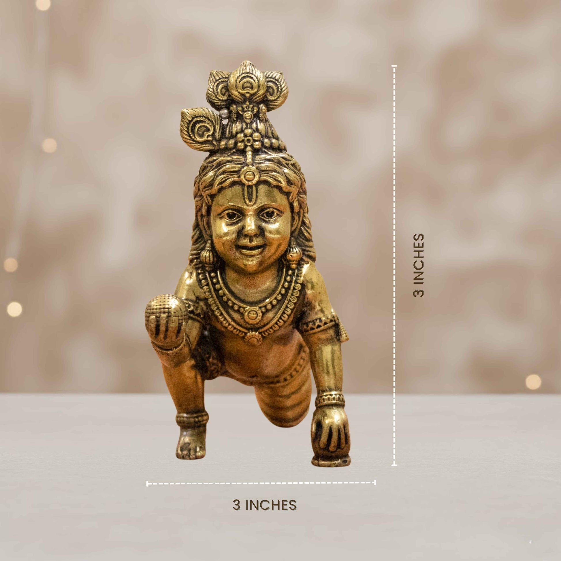 Handcrafted Brass Bal Gopal Idol | Lord Krishna Statue for Prosperity & Positivity - 3 Inch
