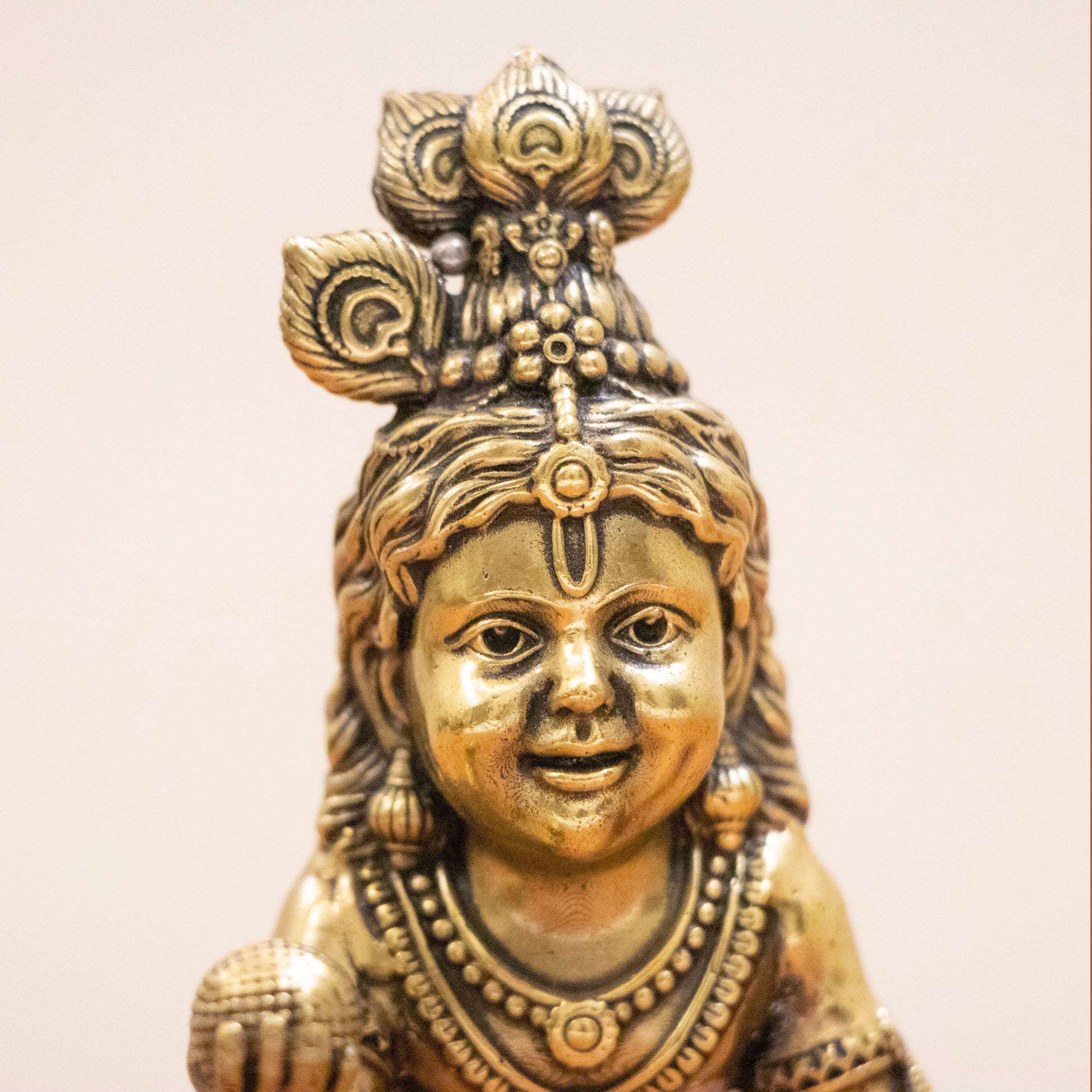 Handcrafted Brass Bal Gopal Idol | Lord Krishna Statue for Prosperity & Positivity - 4 inch