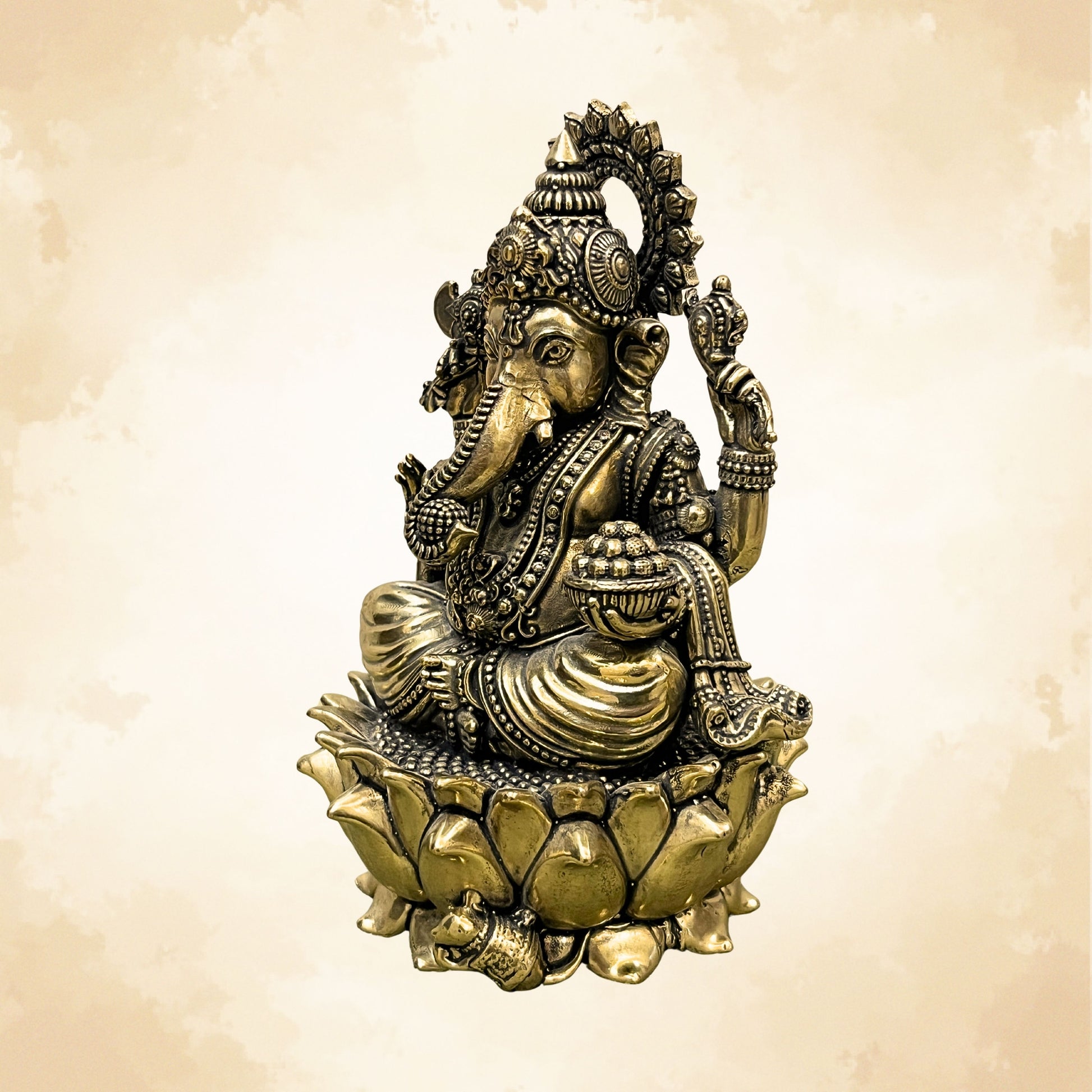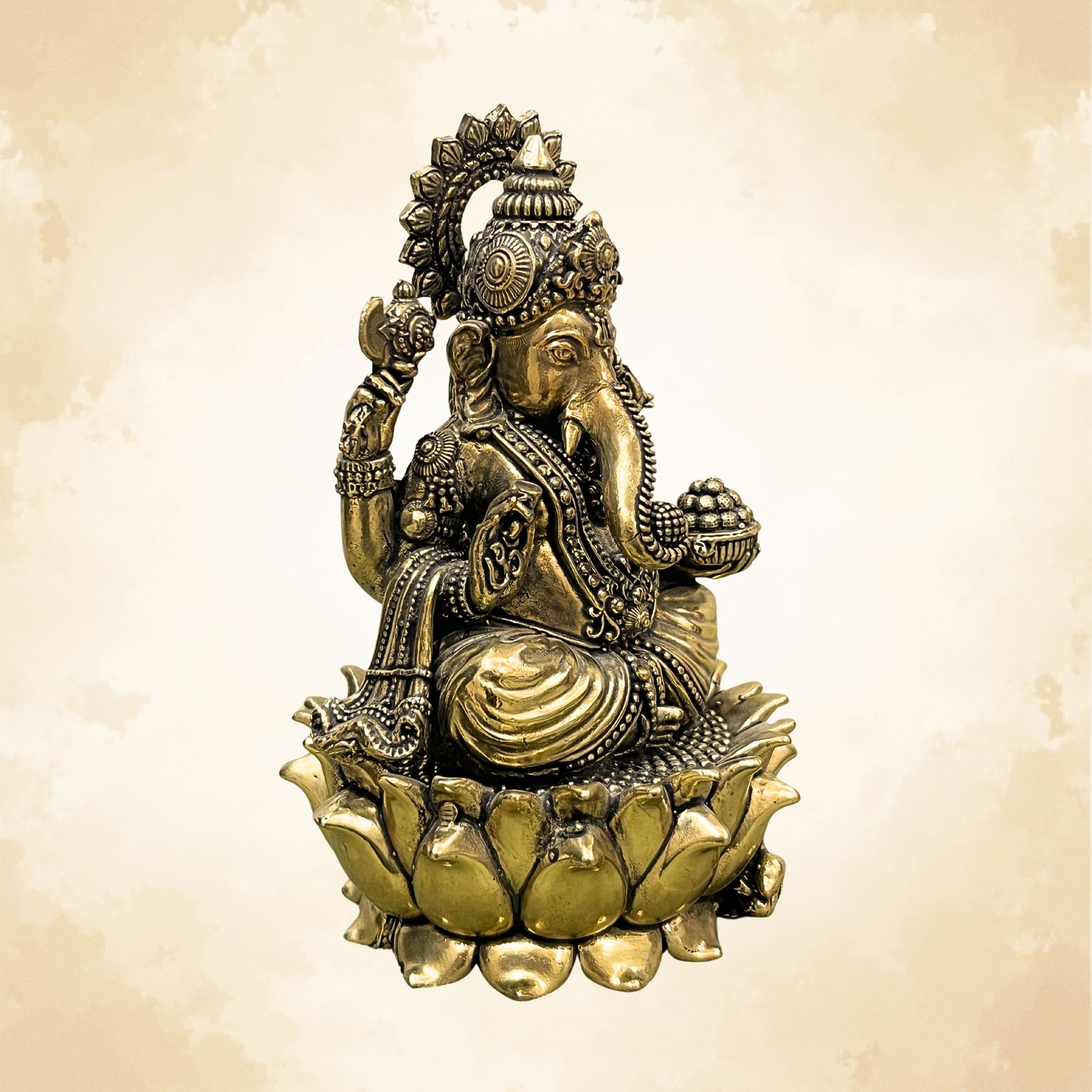 Pure Brass Ganesh Ji on Lotus | Vastu Ganpati Idol for Home & Office