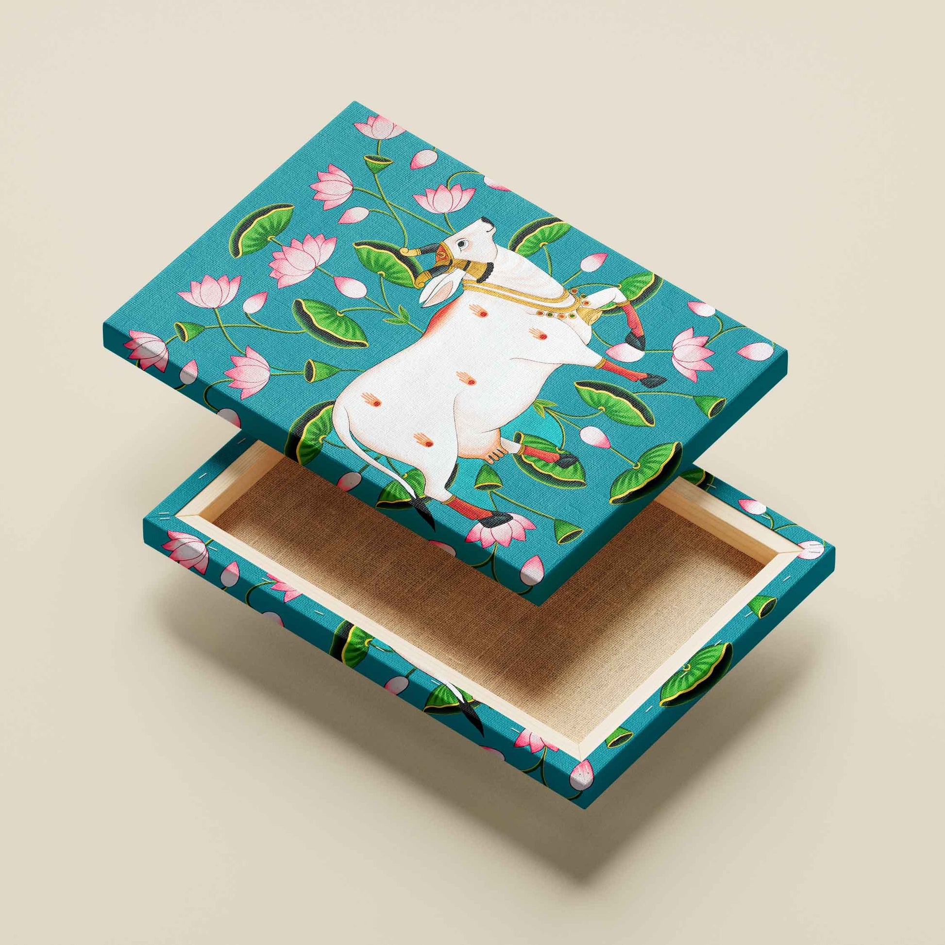Kamdhenu Pichwai Cow with a Nandi Vastu Painting for Home Wall Art