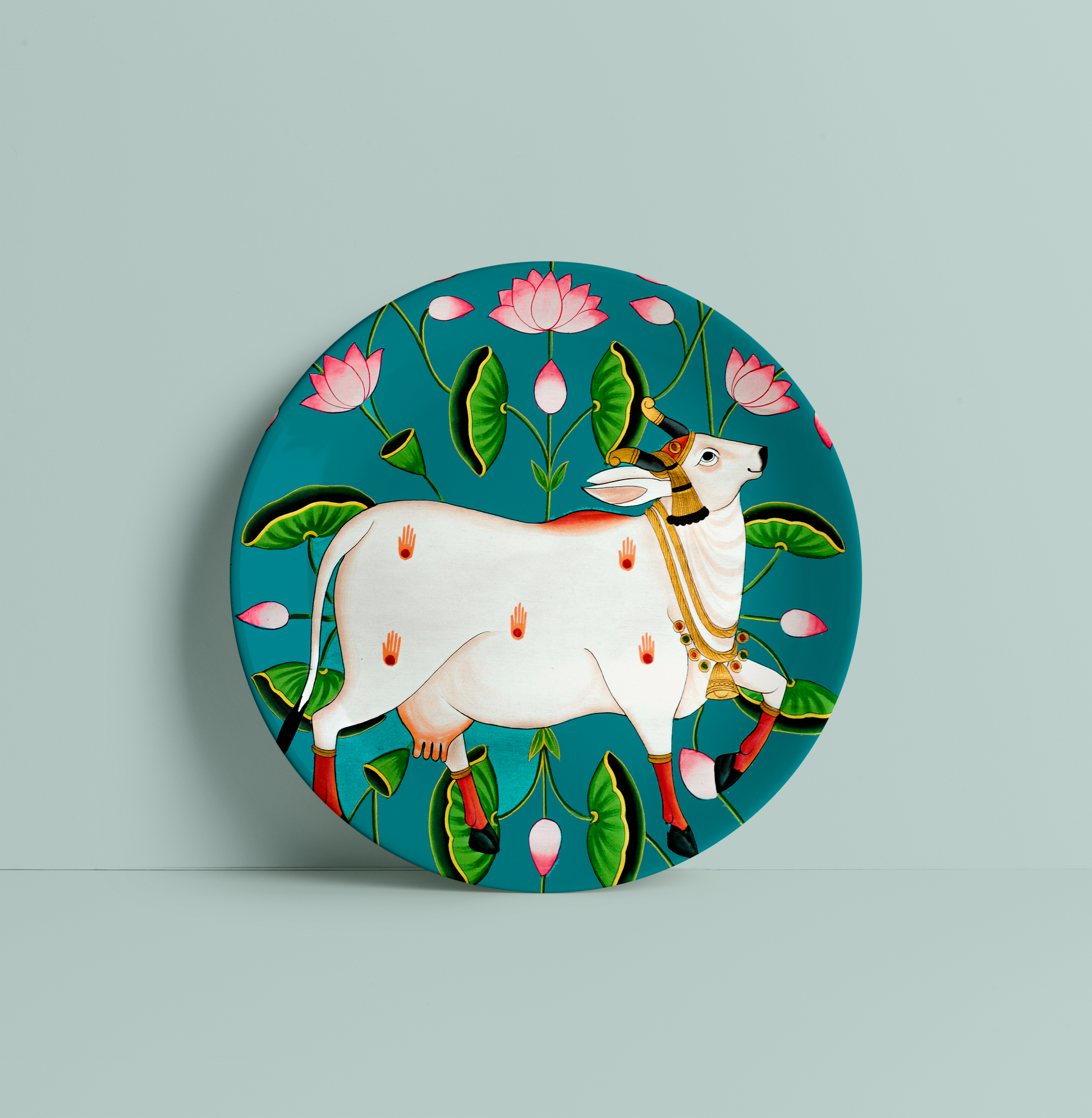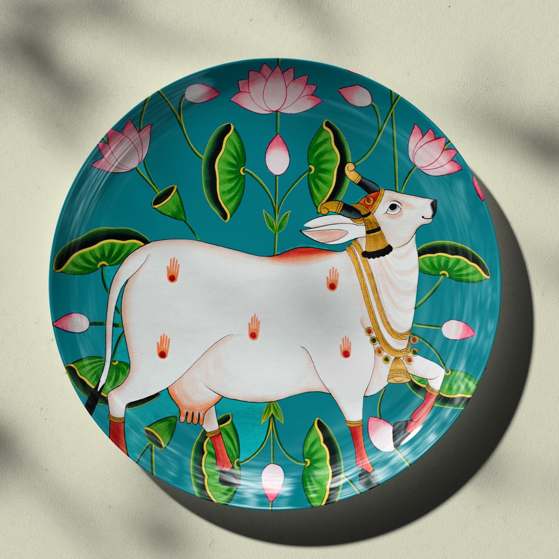 Turq Pichwai Cow Ceramic Plate for Home Decor